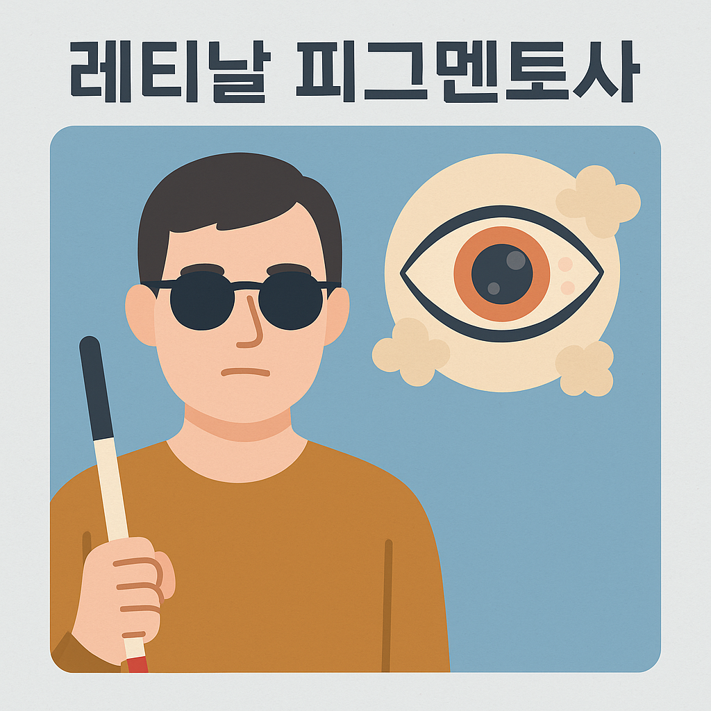 | 주요 증상 | 야맹증, 시야 협착, 말기 중심 시력 소실 |