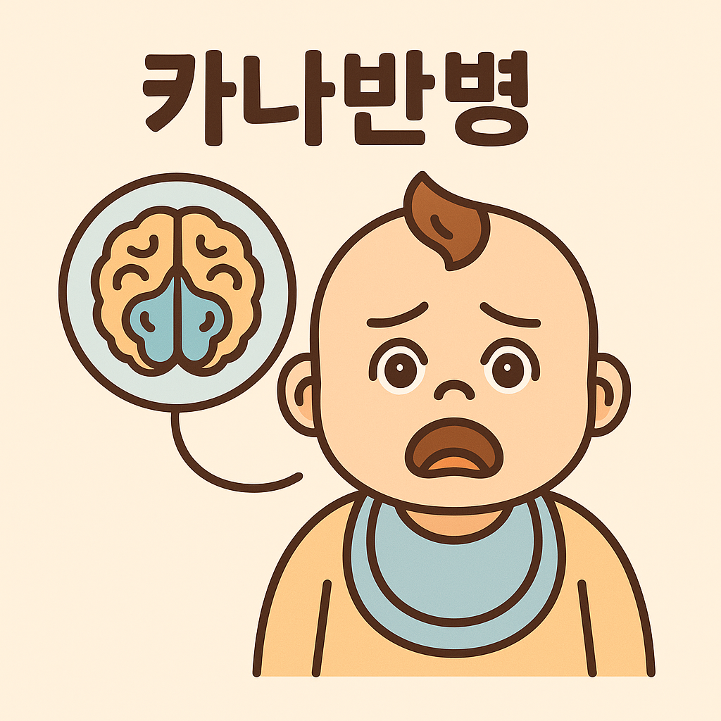 카나반병은 ASPA 유전자 결핍으로 인한 NAA 축적으로 뇌 백질이 해체되는 희귀 유전질환입니다. 생후 수개월 내에 근긴장저하, 발달 지연, 시청각 반응 저하 등의 증상이 시작되며, 진행성으로 신경계 전반에 영향을 미칩니다. 진단은 MRI, 대사검사, 유전자 검사로 이루어지며, 감별 진단이 필수적입니다.