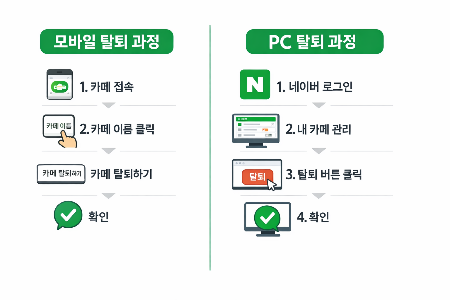 네이버 카페 탈퇴하기는 모바일과 PC에서 진행 방법이 다르기 때문에 절차를 정확히 확인하는 것이 중요합니다.