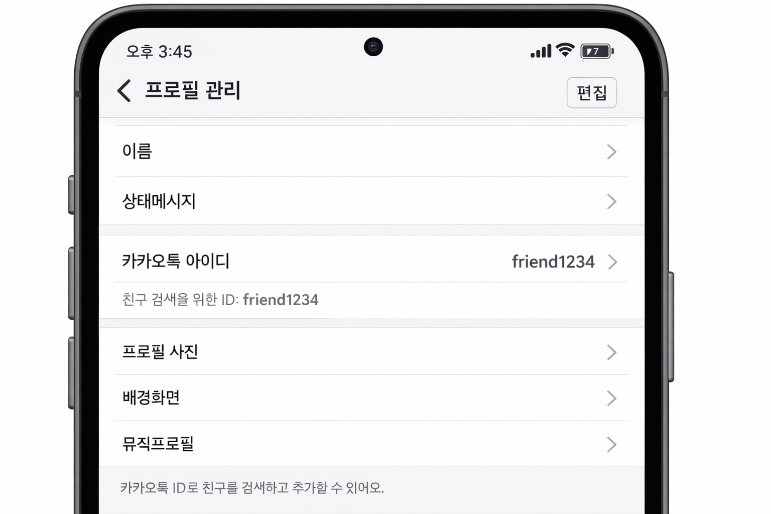 카카오톡 설정에서 아이디 확인하기