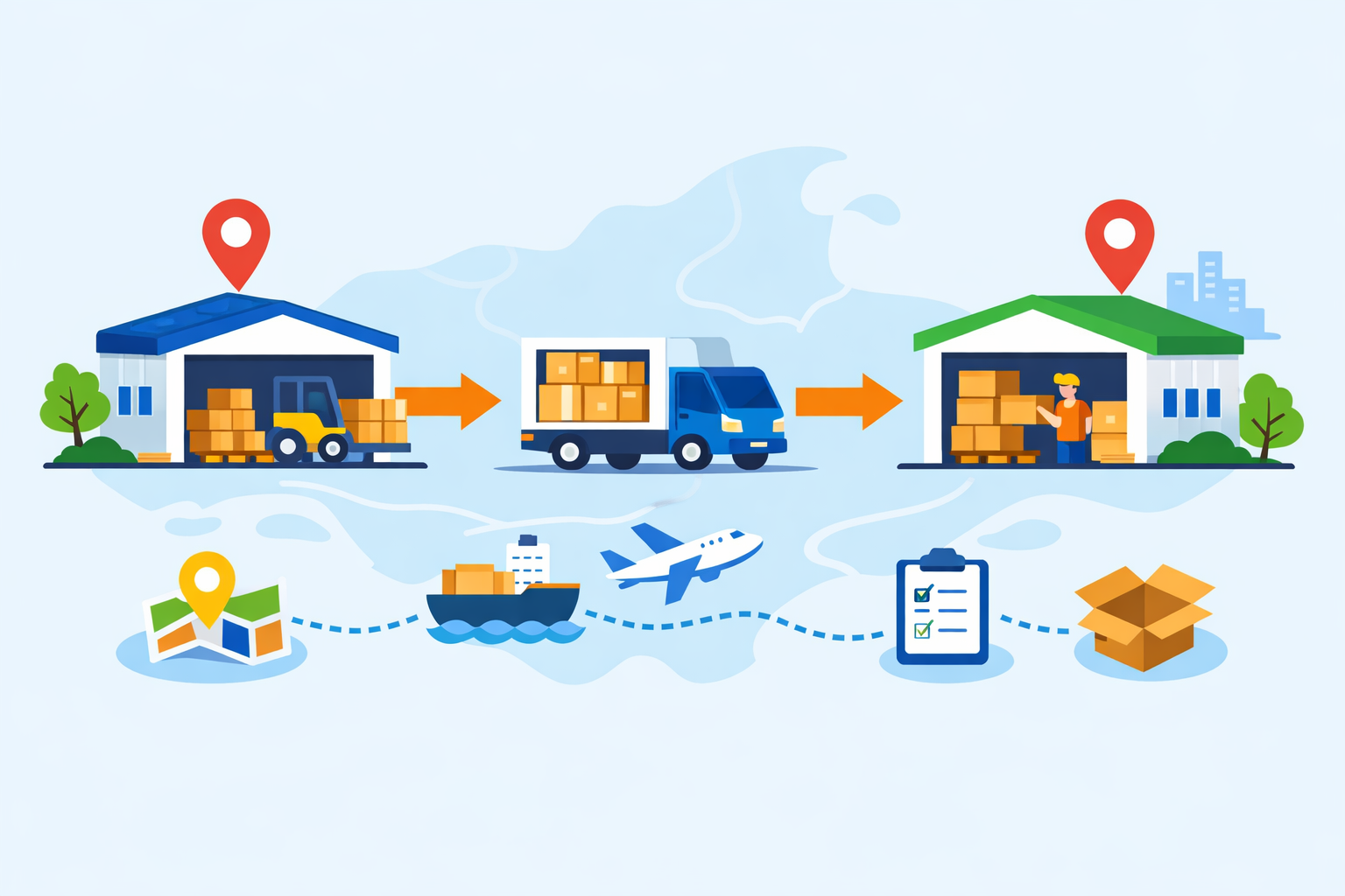 대표적인 배송 단계는 다음과 같은 흐름으로 진행됩니다.