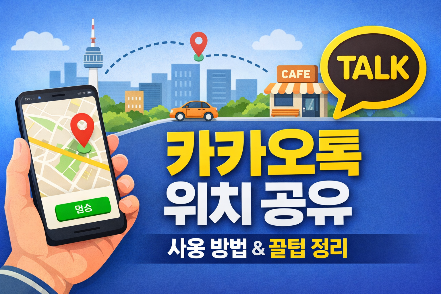 카카오톡 위치 공유 기능은 실시간 위치 전달과 특정 장소 공유까지 모두 지원합니다.